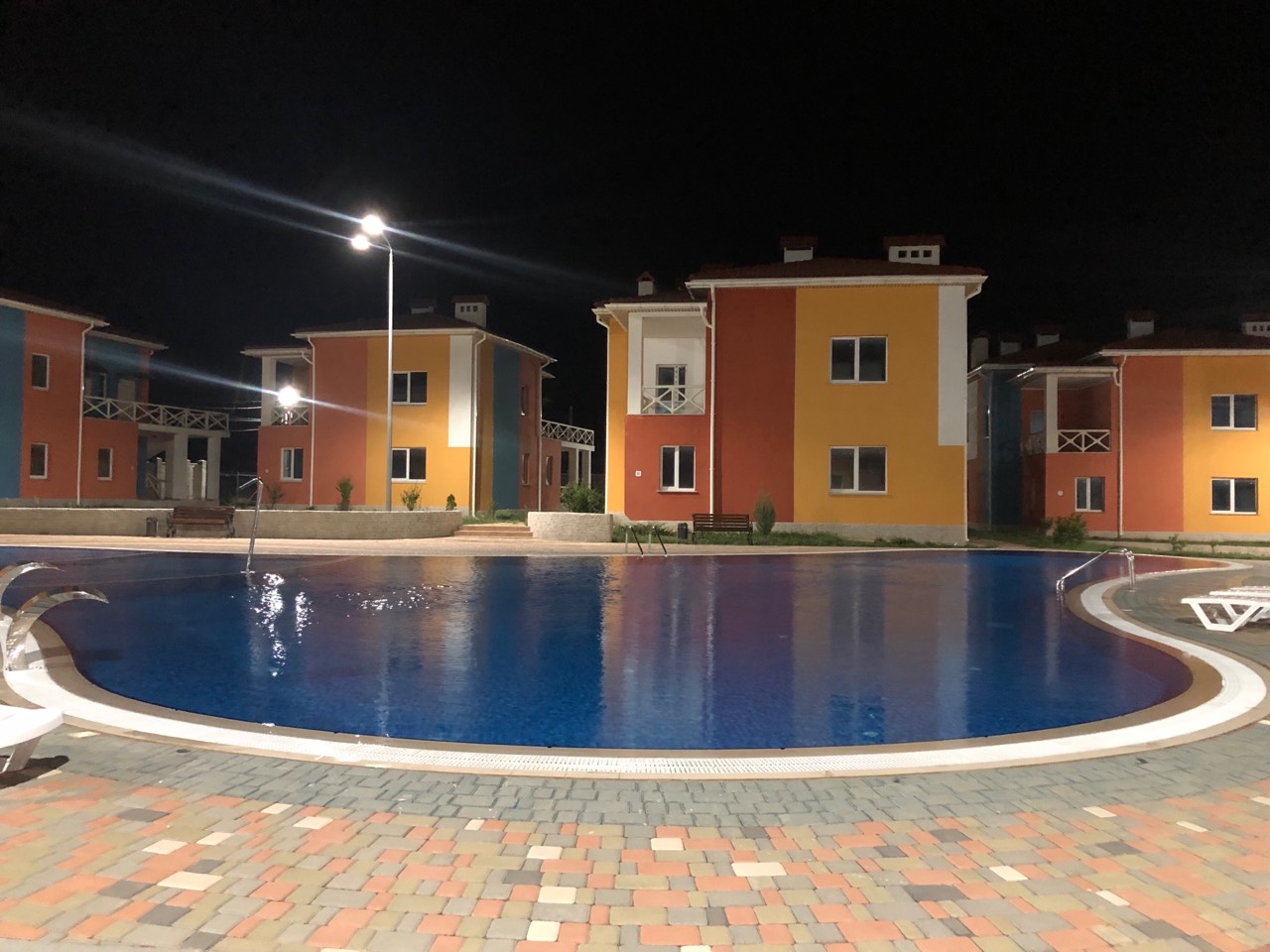 Пансионат «Бухта Круглая» расположен в современном микрорайоне Севастополя между Камышовой и Круглой бухтами. До центра города и главных достопримечательностей — 20 минут пути на автомобиле, до железнодорожного вокзала около получаса, аэропорт Симферополя находится на расстоянии 112 километров. Пансионат включает в себя более 20 двухэтажных коттеджей, расположенных на благоустроенной закрытой территории на берегу моря. Гостей ожидают двух-, трех- и четырехместные номера различных категорий. Номера оснащены кухней, в каждом есть кондиционер, холодильник, телевизор, фен. В распоряжении отдыхающих открытый трехуровневый бассейн с пресной водой с детской зоной, парковка возле жилых корпусов, беспроводной интернет. Для юных туристов на территории пансионата организована игровая площадка и детский бассейн. В двух минутах ходьбы находится городской галечный пляж.